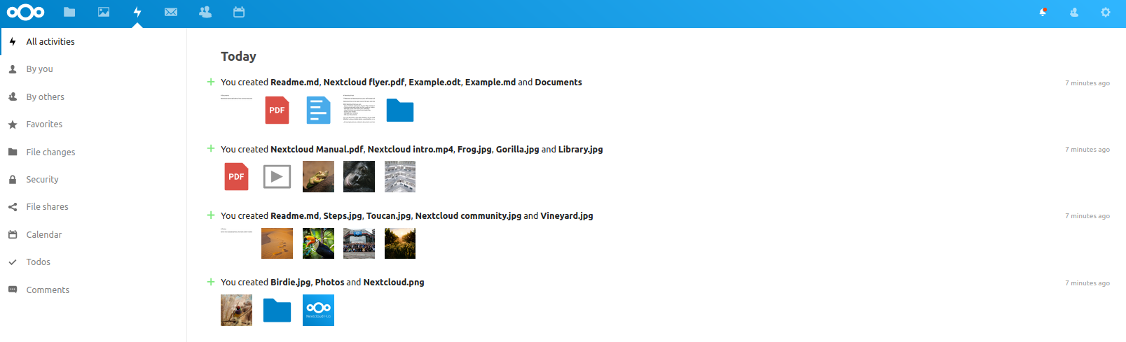 Aby przejrzeć pliki na swoim dysku należy przejść do sekcji „Files”. Przy pierwszym logowaniu usuń przykładowe pliki z katalogu współdzielonych folderów i zastąp je własnymi.